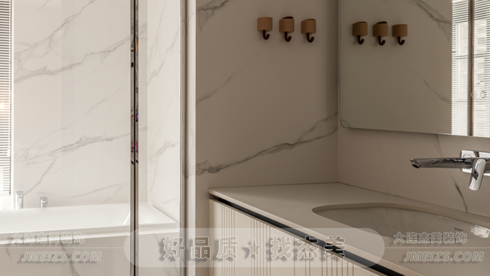 主衛(wèi)的設(shè)計(jì)則更加注重細(xì)節(jié)。淺色的磚墻和潔具不僅使空間顯得更加寬敞明亮,還能夠有效地反射光線,使整個(gè)空間充滿了溫馨的氛圍。而那一抹淡淡的色彩,如同女人的腮紅,為這個(gè)空間增添了一絲性感的魅力。