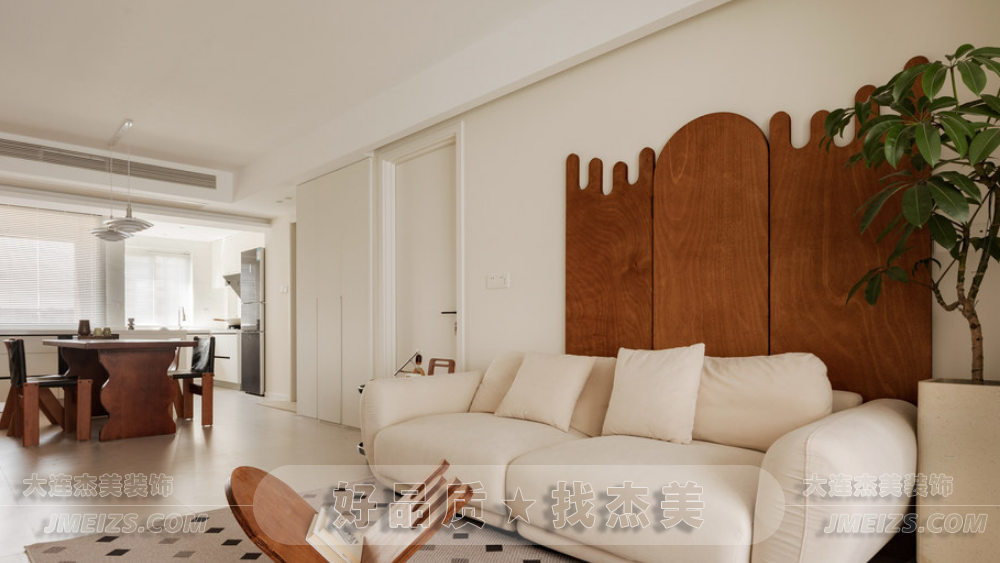 在客廳的硬裝設計中,我們延續(xù)了胡桃木加奶油白的設計風格,營造出舒適、溫馨的氛圍。