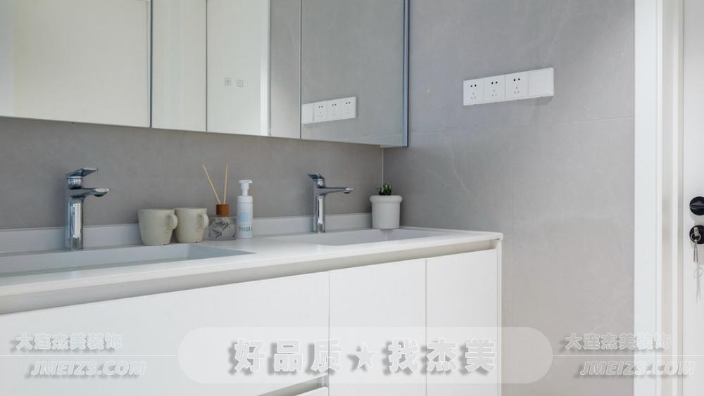 衛(wèi)生間干區(qū),我們選擇了原木色調(diào)的成品定制浴室柜,與客餐廳的柜體顏色形成呼應(yīng),保持了家居的統(tǒng)一風格。