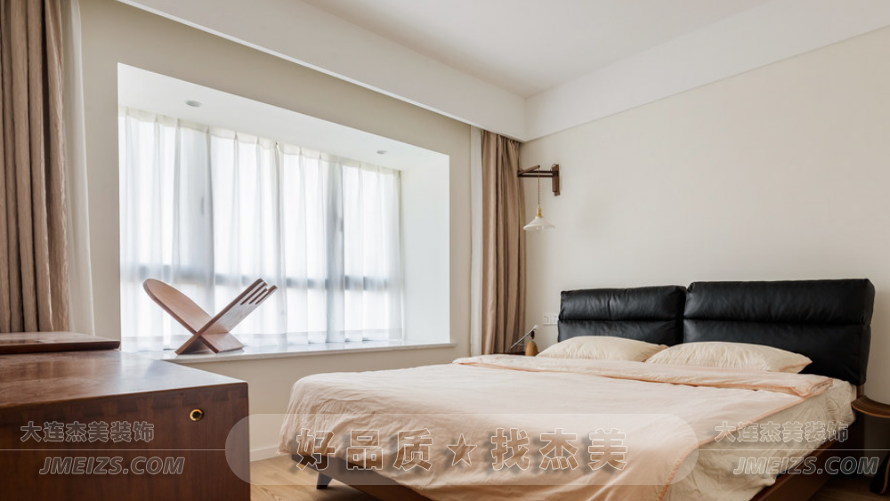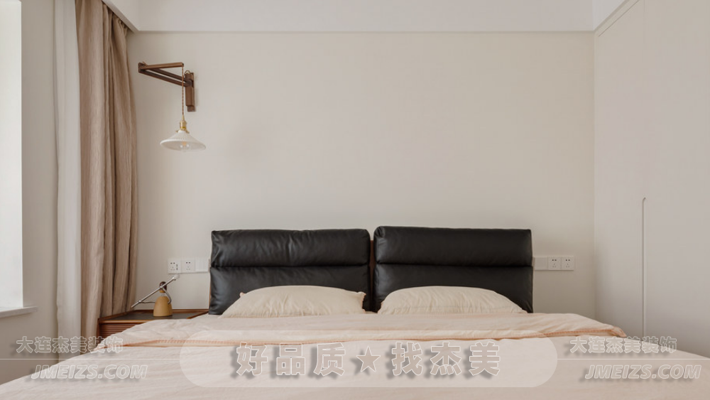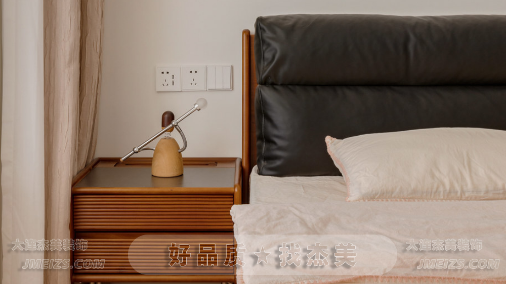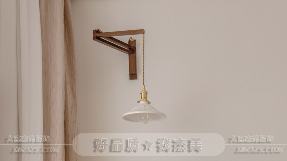床頭復(fù)古的胡桃木壁燈不僅具有調(diào)節(jié)角度的功能,更為看書或休息時提供了舒適的照明體驗。