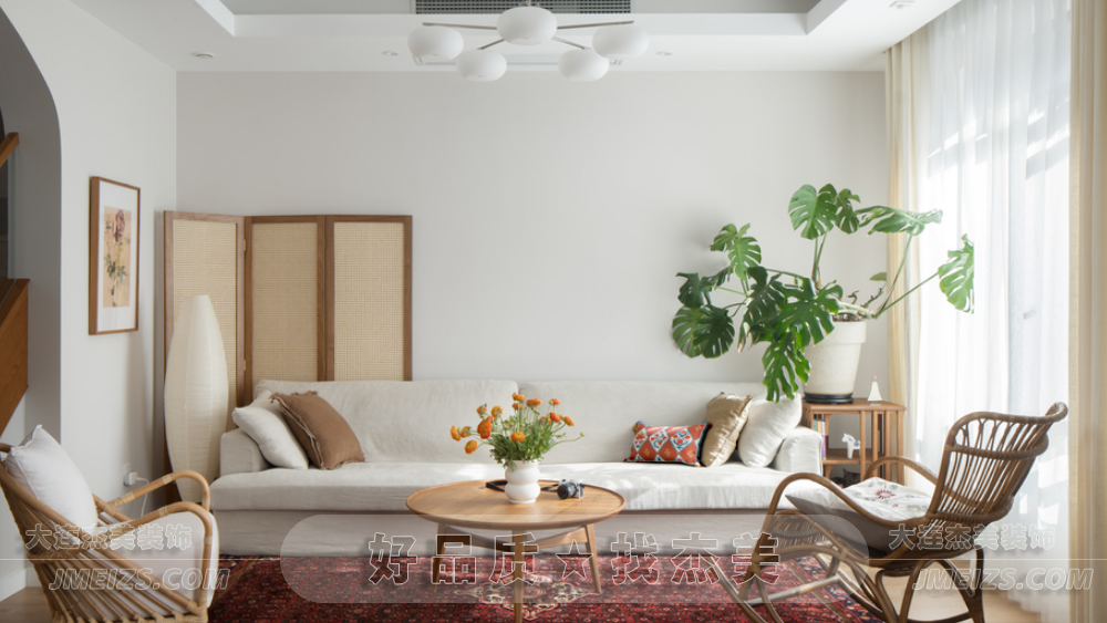在客廳這里,我們追求的是一種波西米亞的簡(jiǎn)約與自由。將過多的裝飾剔除,我們更傾向于以原木和奶油白的和諧來構(gòu)建這個(gè)空間,展現(xiàn)出自然的溫暖與寧靜。