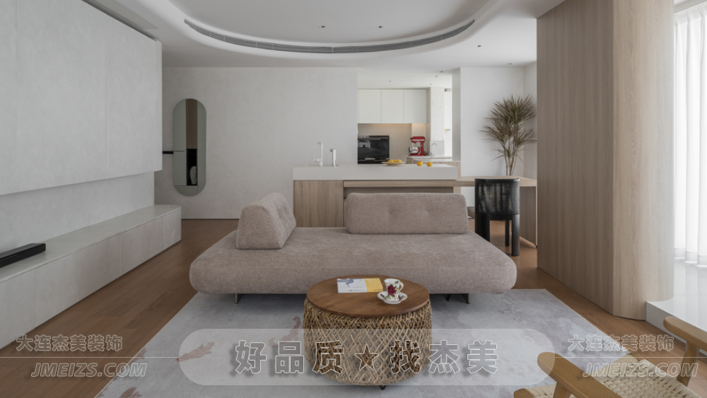 客廳的整體布局注重自然和舒適。使用了LOGA亞麻灰直排布藝沙發(fā)和Mountain Living藤編茶幾,為空間營造了一種放松和隨性的氣氛。