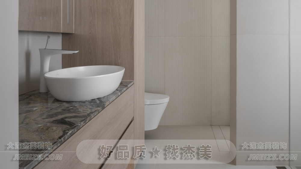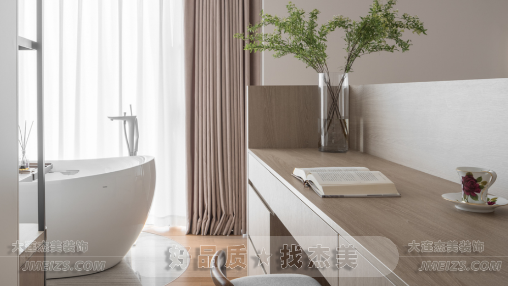 衛(wèi)生間的設(shè)計考慮了實用性與美觀性。床頭靠背后的定制化妝桌為女屋主提供了便利的日常護膚和化妝空間。