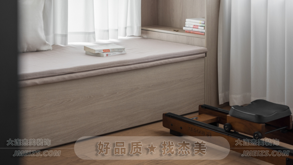 多功能房主要作為女屋主的健身區(qū)和備用儲物室。靠窗的飄窗臺在保證室內(nèi)采光的同時,下方提供了大量的儲物空間。