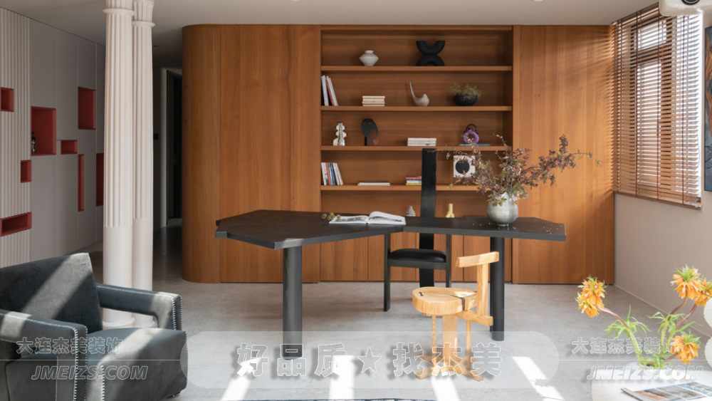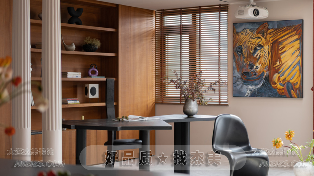 這種光影效果不僅增加了空間的視覺深度,還為書房增添了一份寧靜和舒適。