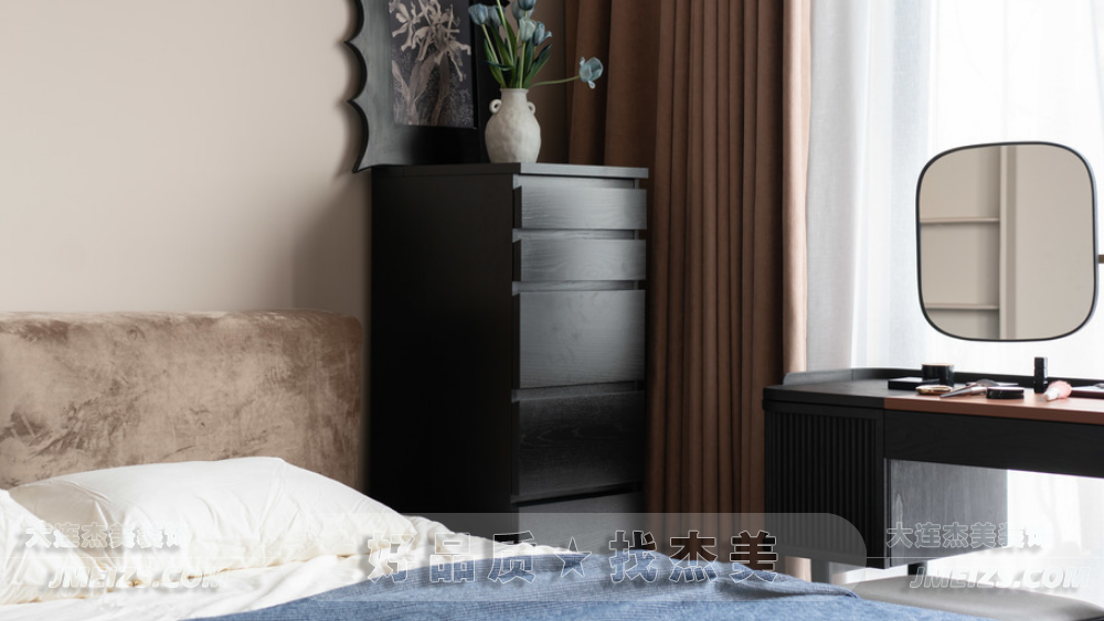 與公共區(qū)域的夸張和個(gè)性化設(shè)計(jì)不同,臥室更多地體現(xiàn)了女主人喜歡的沉穩(wěn)和內(nèi)斂。這種風(fēng)格轉(zhuǎn)換不僅豐富了整體空間的層次感,也讓臥室成為一個(gè)真正適合休息和放松的私密空間。臥室的設(shè)計(jì)也注重細(xì)節(jié)和品質(zhì),無論是材料的選擇還是家具的布局,都體現(xiàn)了設(shè)計(jì)師對品質(zhì)生活的追求。