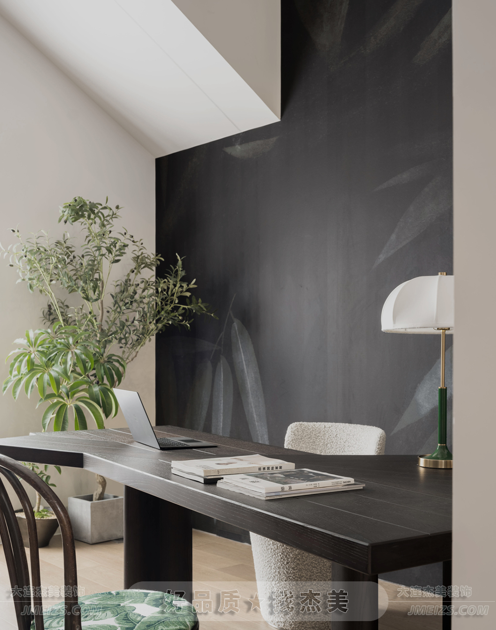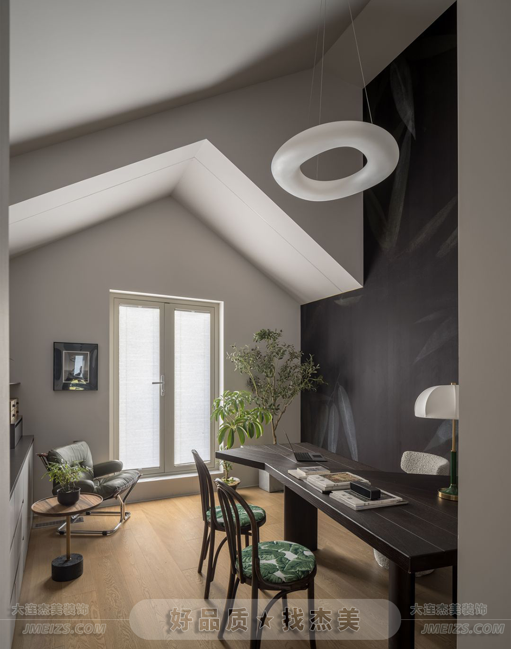 書房的設(shè)計(jì)充分考慮了空間的采光問題,頂面結(jié)構(gòu)完全還原了原始的建筑結(jié)構(gòu),以保證充足的自然光。