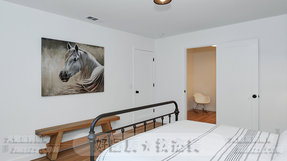 暖白色吊頂與白墻面色彩統(tǒng)一,整體空間純凈一致。功能區(qū)位分明,又融為整體。