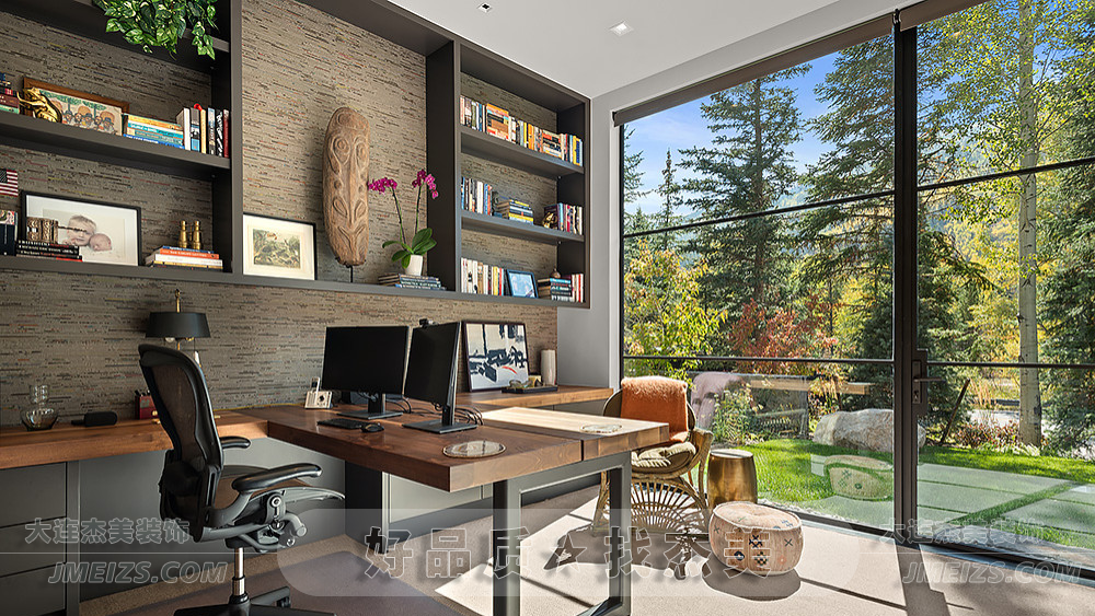 這個(gè)書(shū)房是一個(gè)與大自然和諧共生的空間,它讓人感覺(jué)寧?kù)o、舒適,也充滿了知識(shí)和創(chuàng)造力的氛圍。
