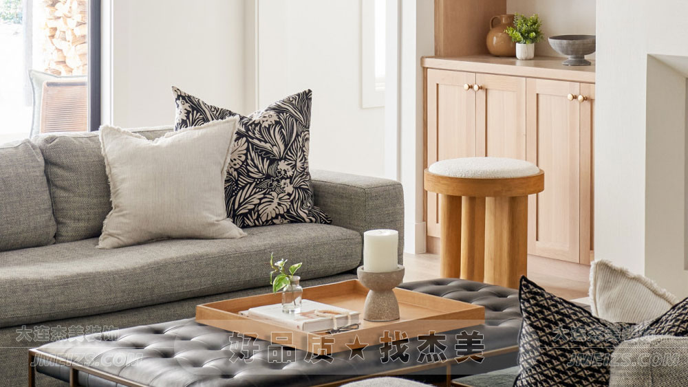 客廳的墻面采用白色亮調(diào),與原木家具形成了鮮明的對比。這種金色配飾,給人一種高貴的感覺。它既不過于繁雜,也不失奢華,完美地詮釋了簡約不失高貴的設(shè)計理念。
