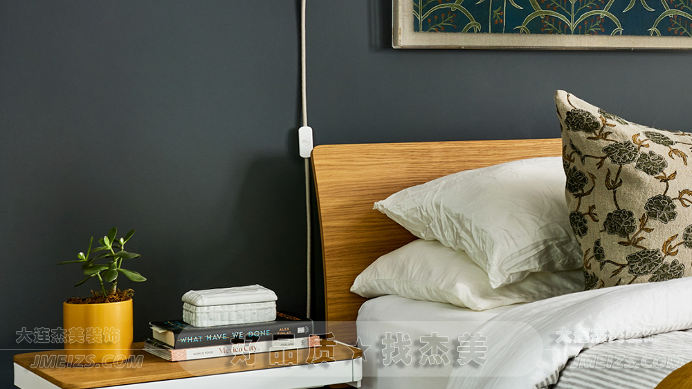 床頭柜上擺放的是幾本書(shū)和一盆小植物,