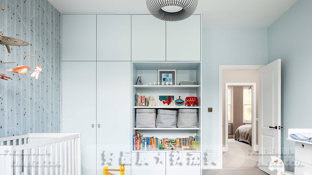 室內(nèi)的色彩以柔和的天空藍(lán)為主,給人一種如同漫步云端的輕松感。墻上淡雅的星球圖案壁紙,仿佛打開了一扇窗,引領(lǐng)著孩子們的想象力穿越銀河,探索星際的奧秘。這樣的設(shè)計不僅僅是視覺上的美悅,更是對孩子內(nèi)心世界的溫柔呼應(yīng)。