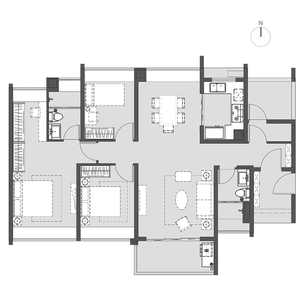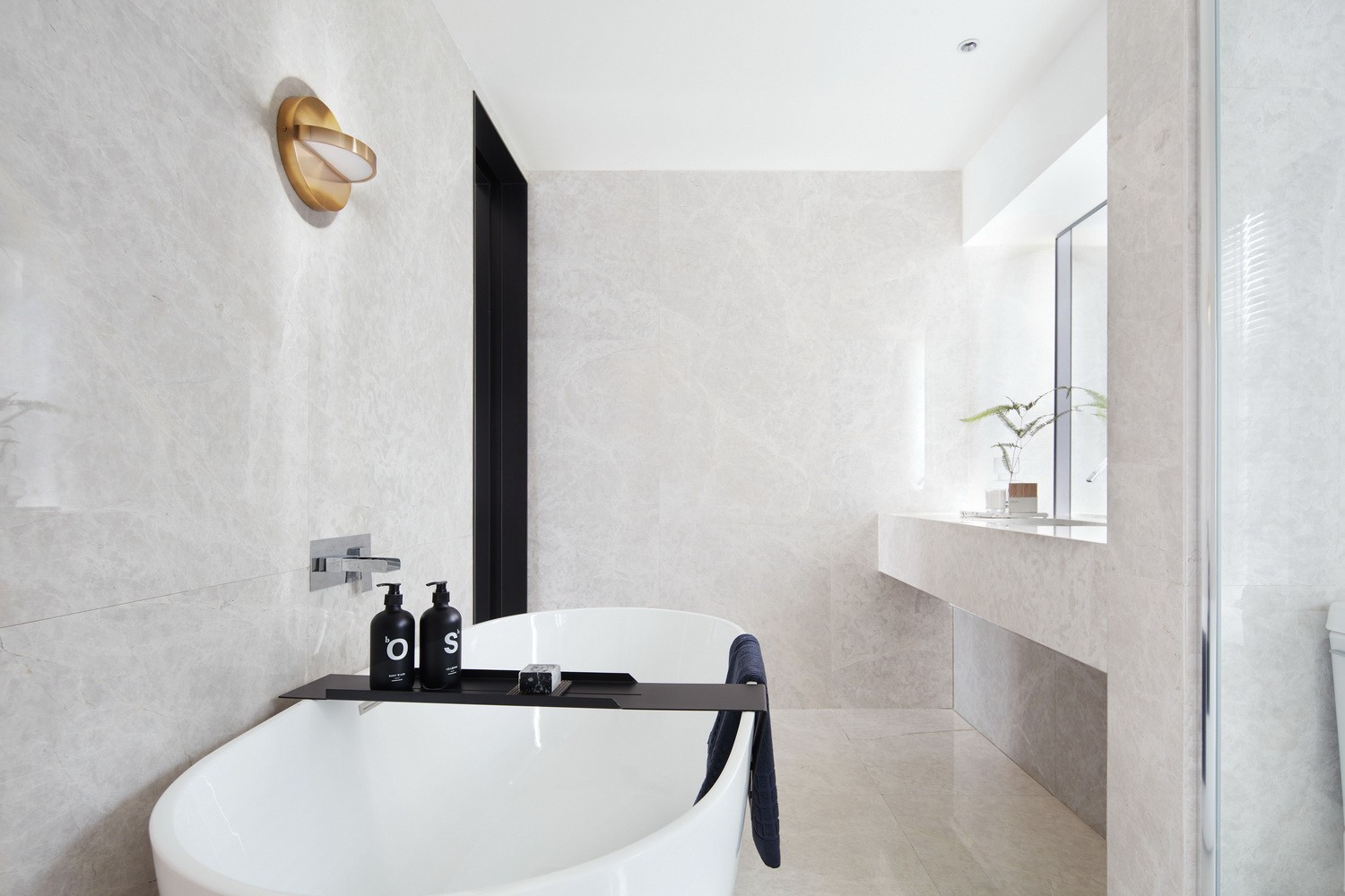 主臥干濕分區(qū),大膽取消隔墻,帶來全新體驗??諝饽媳睂α?,讓生活向陽而生。開放后的空間,打破常規(guī),模糊功能定義。這里,空間流動多元,充滿曖昧氣息,更具想象與可能性。不再被傳統(tǒng)格局