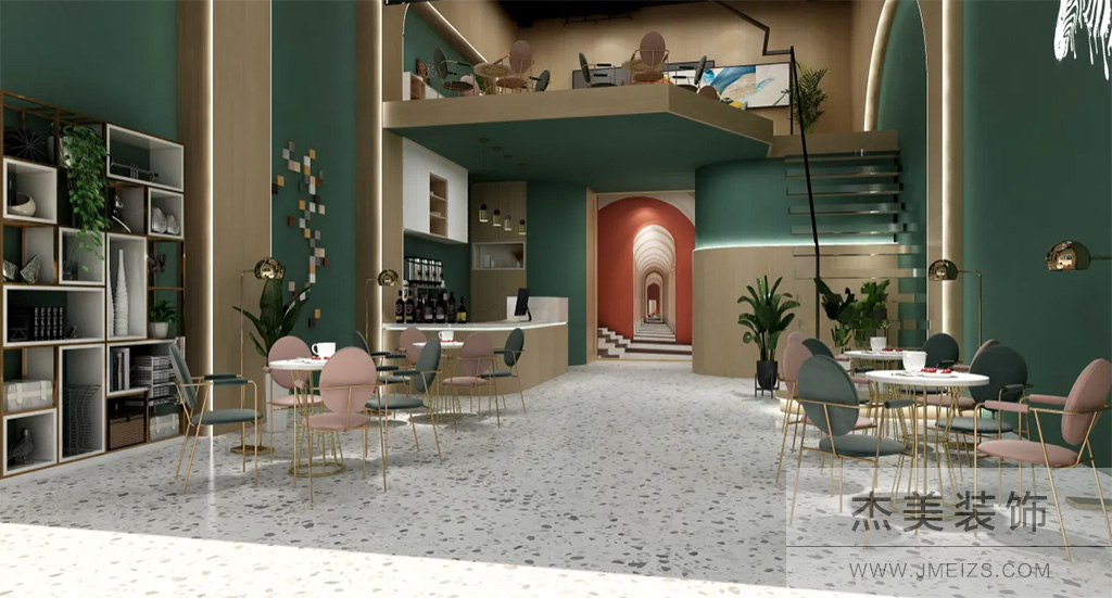 設(shè)計說明:此方案為北歐風(fēng)格,主體采用北歐風(fēng)的色系搭配,同時融入輕奢風(fēng)格的代表元素,搭配原木柜體及墻面裝飾。增加空間的靈動感。通過飽和度較高的墨綠色乳膠漆和原木風(fēng)格元素以及北歐配色的家具的對比,使得視覺沖擊感較強,對客戶的新引力增大,空間雖采用了較暗的顏色進行配色,但卻不失整體清新的感覺。樓梯踏步采用玻璃材質(zhì),在吸引客戶好奇心的同時,為空間整體效果增添了新鮮元素。較高的舉架,進行局部的二層搭建,流出部分區(qū)域作為挑空,增添餐位的同時,也不失整個空間的開闊。